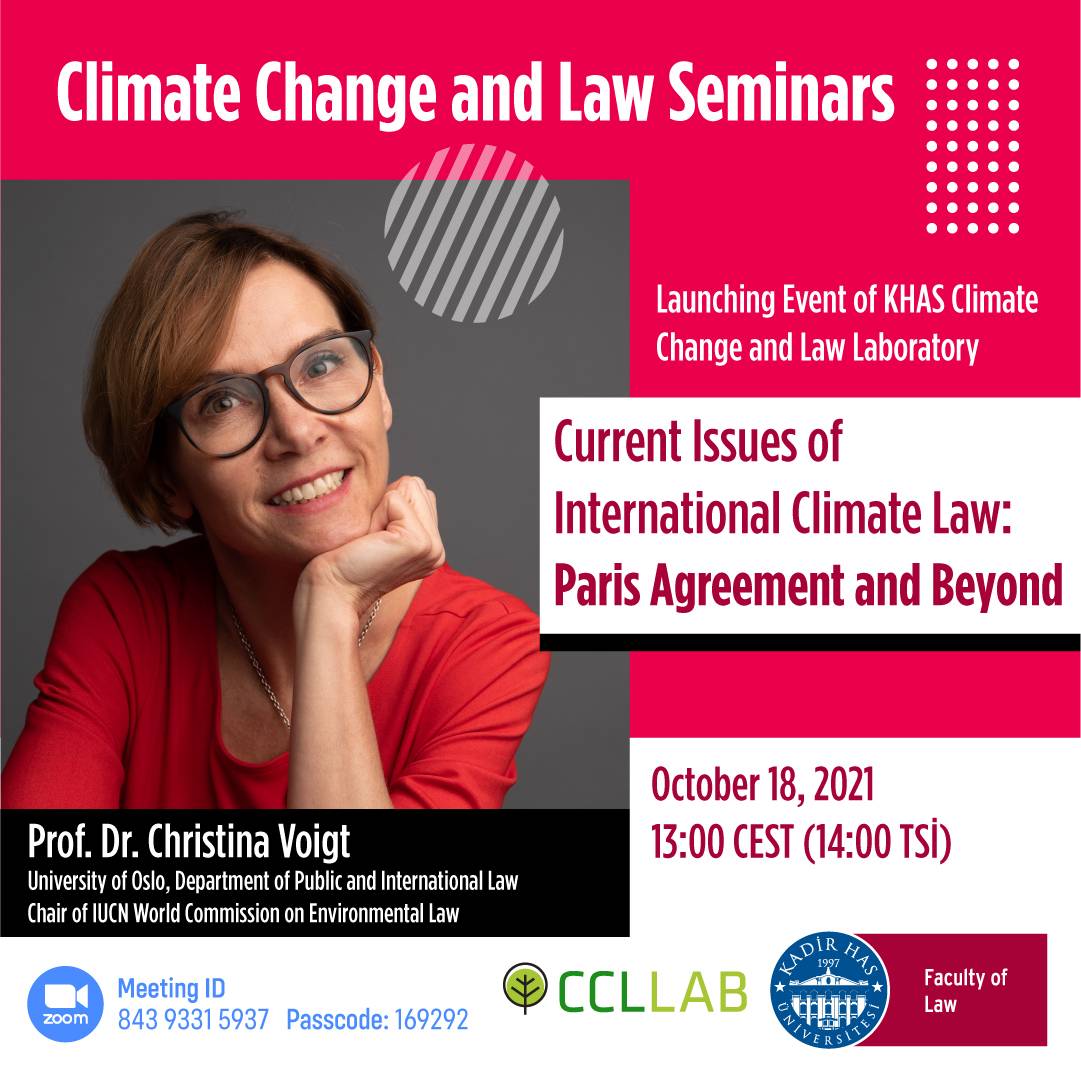 CCLLAB’in 18 Ekim Pazartesi günü gerçekleşecek açılış seminerinde, bu alanın dünyaca ünlü uzmanı Prof. Dr. Christina Voigt, “Uluslararası İklim Hukukunun Güncel Meseleleri” hakkında bir konuşma yapacak. Konuşmada, Paris Anlaşması ve ilgili diğer hukuki metinler ışığında iklim değişikliği hakkında yürütülen hukuki tartışmalara değinilecek. Konuşmanın akabinde bir soru-cevap oturumu da gerçekleşecek.