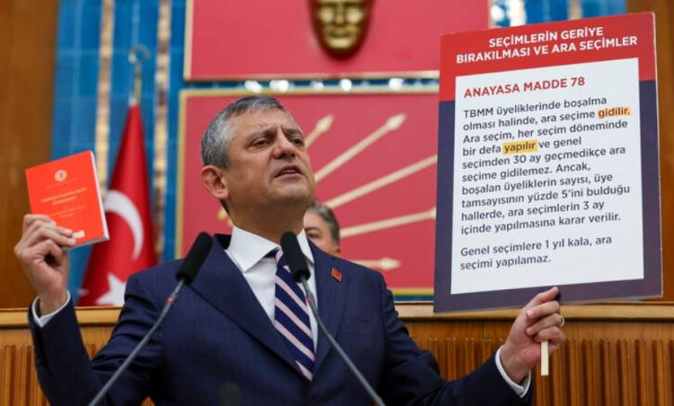 “Bugün bir başka örnekle karşı kayısıyız. Geçtiğimiz günlerde Anayasa Mahkemesi ‘Can Atalay’ı sal’ demişti. Anayasa Mahkemesi ‘Tayfun Kahraman’ı, Gezi tutuklularını sal’ demişti. Anayasa Mahkemesi ‘Kavala’yı bırak, Selahattin Demirtaş’ı bırak’ demişti. Birileri benim işime gelmiyor diye o maddeyi tanımazdan gelmişti. Birçok krizin içinde yaşadığımız en derin kriz anayasayı tanımama krizi. Şimdi geldik millet yoksulluktan, işsizlikten, sefaletten, her türlü zorluktan yılmış. Sesini duyurmak istiyor. Emeklileri çağırıyoruz meydanlara, silme meydanlar doluyor. Gözlerde öfke, hınç. Nereye çağırılsa yedi bölgede sesini duyurmaya çalışan emekliler, hakkını alamayan emekçiler, perişan durumdaki çiftçiler, siftahsız esnaflar. Bu şartlar altında milletin bir seçime ihtiyacı var. ‘Erken seçim’ diyorsun, ‘Yokuz biz’ diyorlar. Niye? Çünkü şöyle diyorlar. Biz o zaman çok karşı çıktık ama kıl payı farkla OHAL’de değiştirdiler ilgili maddeyi. Diyor ki ‘Sen oy vereceksin. Beş yıllığına birini seçeceksin. Sonra kenara çekileceksin.’ Böyle eliyle ittirdiği, milletin kendisi. ‘Beş yıl boyunca her şeyi ben yapacağım, ben söyleyeceğim, ben kararlaştıracağım.’ Buna bir çare yok mu? Çaresi erken seçim. Hükümet, AK Parti tek başına yetmez, ama MHP desteğiyle erken seçimi yapmayabiliyor. Ama bir yandan da sürekli millete saldırıyorlar. Milletin sesini duyurmak, erken seçime zorlamak, hiç değilse gidişata milletin itirazını göstermek için açtık anayasaya baktık. Anayasanın 78’nci maddesi var. Açık ve net yazıyor. Diyor ki; ‘Türkiye Büyük Millet Meclisi üyeliklerinde boşalma olması halinde ara seçime gidilir. Ara seçim her seçim döneminde bir defa yapılır.’ Net yazmış. Bakın, bu maddeden bir madde önce ki bu 78 ya, 77’de. ‘TBMM ve Cumhurbaşkanlığı seçimleri beş yılda bir aynı anda yapılır’ yazıyor. Bu ‘yapılabilir’ değil, bu da ‘yapılabilir’ değil. Bu ‘gidilebilir’ değil, bu da ‘gidilebilir’ değil. Net yazıyor. Ama birisi ‘Ben 77’ye göre Cumhurbaşkanı olacağım ama emrettiği gün ara seçimi yapmayacağım’ diyor. Bu ara seçimin yapılması gereken iller; İstanbul birinci bölge, Kocaeli, Afyonkarahisar, Kırıkkale, Kastamonu, Adıyaman ve tartışmalı olarak Hatay. Can Atalay milletvekili ise buraya gelmeli; boşsa, orada seçim yapılacaksa o zaman Hatay tarafından bir kez daha rekor oyla seçilmesine imkan tanınmalı. Ama bu yedi seçim bölgesinde AK Parti’nin bir özelliği var. 2023 seçimlerinde yetkiyi aldıklarında Afyon’dan Kastamonu’na, Kırıkkale’den Kocaeli’ne, İstanbul birinci bölgeden Adıyaman’a kadar Hatay dahil yedide yedi birinci parti AK Parti. Yani birer milletvekili seçeceğinde çıkaracak parti normalde AK Parti. Ama ‘Gelin ara seçime gidelim’ diyoruz. ‘Yok günlerimizde’ diyor. Neden yok? Güya bir yandan diyor ki ‘Efendim biz güçlüyüz, seçimleri kazanacağız.’ Ömer Çelik diyor ya ‘Seçimlerde büyük bir zafer kazanacağız.’ Gel sana seçime girme, sekiz milletvekili daha çıkarma… Madem birincisin ya. Son girdiğin seçimin, 31 Mart 2024, mağlubu olma yerine bu girdiğin seçimin galibi olma şansını veriyorum. Gelebiliyorlar mı? Gelemiyorlar. Neden gelemiyorlar? Çünkü o seçimi kazanırken ne dedilerse tersini yaptılar. Mülakatı kaldırmaktan tut, emekliyi ve asgari ücretliyi enflasyona ezdirmemeden; enflasyonu tek haneye getirmekten tut, tek hane olana kadar emekli ve asgari ücrete yılda dört zam vermekten; gayri safi milli hasılanın yüzde 1’i desteklemeyi tarıma, çiftçiye vermek sözünden bunun beşte birine gelene kadar hiçbir sözlerini tutmadılar. Cumhuriyet Halk Partisi o günden sonra yapılan hem yerel seçimde, hem bütün anketlerde, hem de gittiğinde sahada, sokakta, milletin içinde kurulduğu gün gibi Türkiye’nin birinci partisi.”