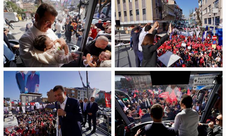İstanbul Büyükşehir Belediye (İBB) Başkan adayı Ekrem İmamoğlu, CHP’nin 5 ilçe belediye başkan adayı ile ilçe turları yaptı. Zeytinburnu’nda Onur Soytürk, Esenler’de Hasan Dalkıran, Beyoğlu’nda İnan Güney, Eyüpsultan’da Mithat Bülent Özmen ve Fatih’te Mahir Polat ile birlikte vatandaşları selamlayan İmamoğlu, yurttaşların ilgi odağı oldu. Bazı noktalarda seçim otobüsünün önünü kesen coşkulu vatandaşlara kısa konuşmalar yapan İmamoğlu, turunun Esenler ve Beyoğlu bölümüne denk gelen cuma namazını, Bayrampaşa Kocatepe Cami’nde kıldı.