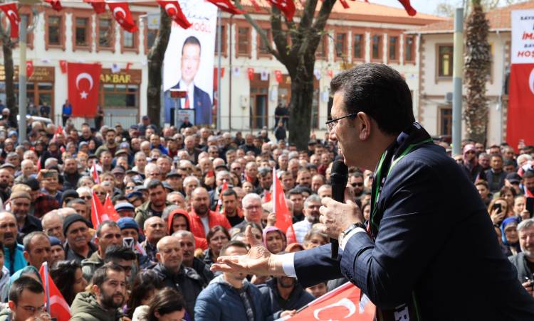 “Muhalefet partisinden belediye başkanı olduğunuzda nasıl ayrımcılık yaşarsınız, nasıl problem çıkarılır, işiniz engellenir; bunun çok komik, trajik hallerini ve konularını yaşadık. Eminim en az benim kadar Bayramiç Belediye Başkanımız da yaşadıklarını anlatabilir. Bunların hepsini sona erdireceğiz. Hükümet, belediye iş birliği nasıl yapılır, nasıl ahlaklı davranılır. Allah aşkına hiçbir akıl alıyor mu? Sayın Cumhurbaşkanı başka partiden hükümet başka partiden olabilir. Bu devletin her kurumu bizim kurumumuz. Bugün Bayramiç Belediye Başkanı aslında devletin bir kurumunu yönetiyor. Ben de İstanbul gibi dünyanın en büyük kentlerinden birisi, ülkenin göz bebeğini yönetiyorum. Ama onlar şöyle bakıyorlar bugünün iktidar; eğer benim partimden değilsen sen yoksun. Hatta bunun ötesinde ne yazık ki düşmanca tavırları bile görebiliyoruz. Kalkıp ‘topal ördek’ denmesi. ‘Sen 13 bin oyla seçimi kazandın mı zannediyorsun’ denmesi. Yani halbuki mesele nedir? Bir oyla bile kazanabilirsin. Ama işte 13 bin oyu beğenmeyen 806 bin oyluk tokadı yer. Demokrasi tokadı iyi bir tokattır. İnsanı kendine getirir. Ama bu arkadaşlar kendine de gelmiyor. Diyor ki illa ikinciyi de yiyelim. Onun zamanı yaklaştı.”