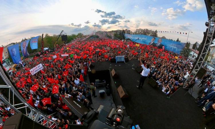 “Allah, sizden razı olsun. Bu yağmurlarda ıslanıyoruz. Ama bu, bizim bereketimiz. Toprağa düşen o güzel tohumları yeşertecek bu yağmur. Bu yağmur, toprağa düşen demokrasiyi yeşertecek. Bu yağmur, bugün burada toprağa düşürdüğümüz adaleti yeşertecek. Bu yağmur bugün burada çocuklarımızın, gençlerimizin ileride çok nitelikli bilim insanı, emekçi, öğretmen, mühendis olmalarını sağlayacak. Bu kardeşiniz, bu evladınız, bu yağmurun bereketi üzerine söz veriyor; size hiç mahcup olmayacak. Birleşe birleşe kazanacağız, unutmayın. Büyüteceğiz oylarımızı. Coşa coşa sandıklara gideceğiz. Sandıkları koruyacağız. Sandıklara sahip çıkacağız. Komşularımızı ikna edeceğiz. Güzel anneler, ablalar, hanımefendiler, beyefendiler, sevgili gençler, herkesle konuşup, onları ikna edeceğiz. Hazır mıyız? Çok çalışacağız. 15 Mayıs sabahı güne uyandığınızda bu güzel Biga’nın havası, size daha güzel gelecek. Doya doya, demokrasiden özgürlüğe bu memleketin havasını içinize çekeceksiniz 15’inde. Her şey çok güzel olacak.”