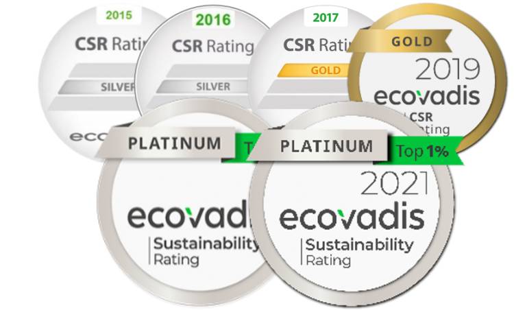 INEOS Styrolution, sırasıyla 2017 ve 2018'deki güçlü sorumlu iş performansı n sebebiyle, 2018 ve 2019'da EcoVadis altın derecesini, o zamanki en yüksek EcoVadis sıralamasıyla almıştı. Şirket, EcoVadis tarafından o yıl tanıtılan yeni bir sıralama olan 2020'de platin derecesiyle ödüllendirildi.