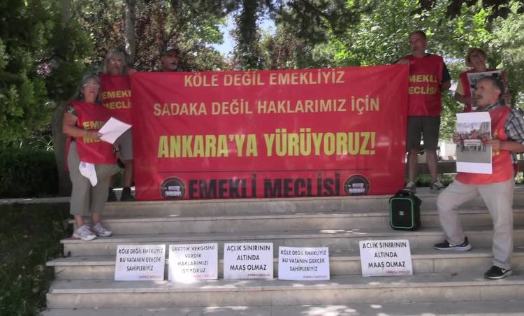 "Biz 16 milyon emekliyiz bu vatanın gerçek sahipleriyiz. Haklarımız için çıktık Ankara'ya yürüyoruz. İnsanca yaşamak istiyoruz. Sadece kendimiz için değil bugünün gençleri, çalışanları, emekçileri, yarına emekli olacaklar biz sizin adınıza da yürüyoruz. Biz İstanbul'dan Bilecik’e kadar bizi hiç yalnız bırakmayan bizi koruduklarını söyleyen yanımızdan hiç ayrılmayan, burnumuzun dibine kadar nefes aldırmayan bir ordu emniyet mensubunun emekli hakları için de yürüyoruz.