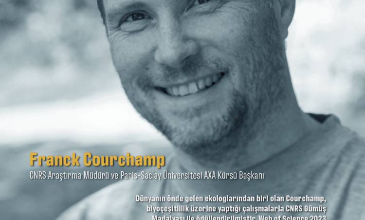 Dr Franck Courchamp dünyanın önde gelen ekologlarından biri olarak kabul edilmektedir. Biyoçeşitlilik üzerine yaptığı çalışmalarla, “araştırmanın özgünlüğü, kalitesi ve önemi” nedeniyle CNRS Gümüş Madalyası ile ödüllendirilmiştir. Web of Science 2023 sıralamasına göre ekoloji alanında dünyanın en çok atıf alan bilim insanlarından biridir. Biyolojik istilalar, bunların ekonomik maliyeti ve iklim değişikliği karşısında biyoçeşitlilik konularında uzmandır. “Akdeniz: Baskı Altında Bir Deniz” tartışma serisine katılan ilk konuk olan Courchamp CNRS Araştırma Müdürü ve Paris-Saclay Üniversitesi AXA Kürsü Başkanıdır.