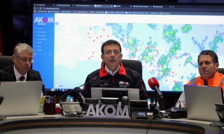 Türkiye Belediyeler Birliği (TBB) ve İstanbul Büyükşehir Belediye (İBB) Başkanı Ekrem İmamoğlu, İstanbul’da yaşanan olumsuz hava koşullarına karşı yapılan mücadeleye, Afet Koordinasyon Merkezi’nde (AKOM) tanıklık etti. Kurmaylarından ve uzman isimlerden bilgi alan İmamoğlu, İstanbulluları özetle şu sözlerle bilgilendirdi: