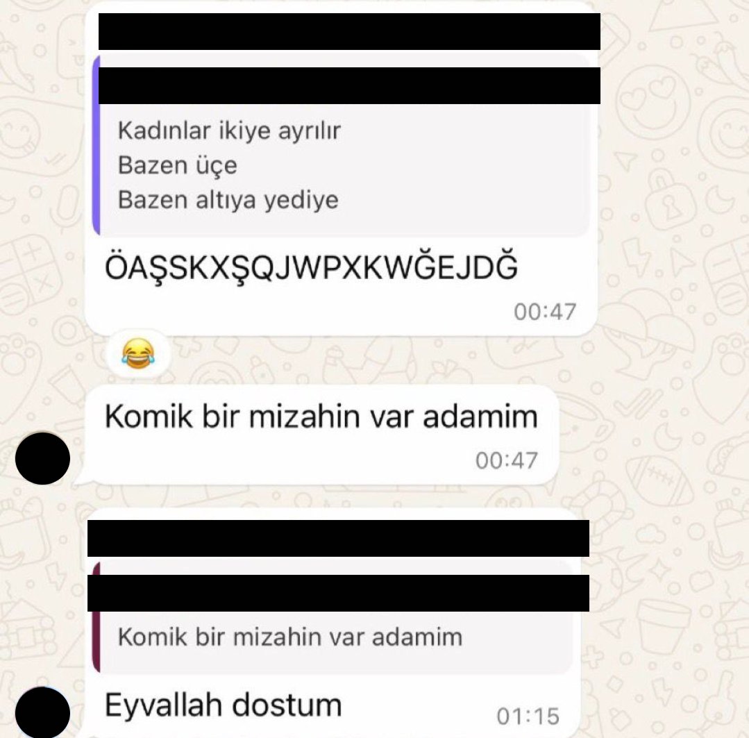 Soruşturma başlatılan yazışmalarda bir öğrencinin "Kadınlar ikiye ayrılır, bazen üçe, bazen altıya yediye" yazdığı anlaşılırken bir başka öğrenciden de "Komik bir mizah anlayışın var adamım" dediği görüldü.