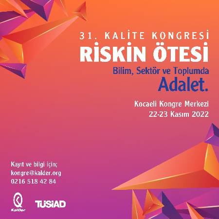 Çeyrek asırdır mükemmellik kültürünü yaşam biçimine dönüştüren KalDer’in bu yıl 31’incisini düzenlediği Kalite Kongresi, 22-23 Kasım tarihlerinde Kocaeli Kongre Merkezi’nde, “Riskin Ötesi: Bilim, Sektör ve Toplumda Adalet” temasıyla yapılacak. Aygaz, Opet, Tüpraş ve Metro İstanbul’un altın sponsor olarak desteklediği, Kocaeli Sanayi Odası ve Kocaeli Büyükşehir Belediyesi’nin katkılarıyla düzenlenecek kongre; bilim, akademi ve iş dünyasının önde gelen temsilcilerini ağırlayacak.