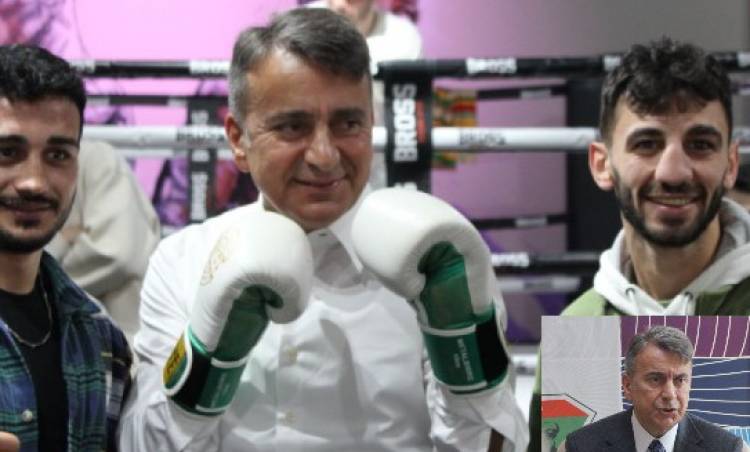 Bakırköy ziyaretlerinin ardından Kadıköy Fikirtepe’de Bross Boks Kulübü’nü ziyaret ederek genç sporcularımız Batuhan Çiftçi ve Volkan Gökçek ile bir araya geldi. Genç sporcular, Türkiye’deki organizasyonların yanlı olduğunu düşündükleri için yurtdışı organizasyonlarına katıldıklarını ancak bu başarıları Türkiye’de de yaşatmak istediklerini dile getirdiler. Yaşadıkları medya ambargosundan dert yanan gençleri can kulağıyla dinleyen Azmi Karamahmutoğlu boks eldivenlerini giyerek gençlerle antrenman yaptı._153444760_.jpeg_.jpg)