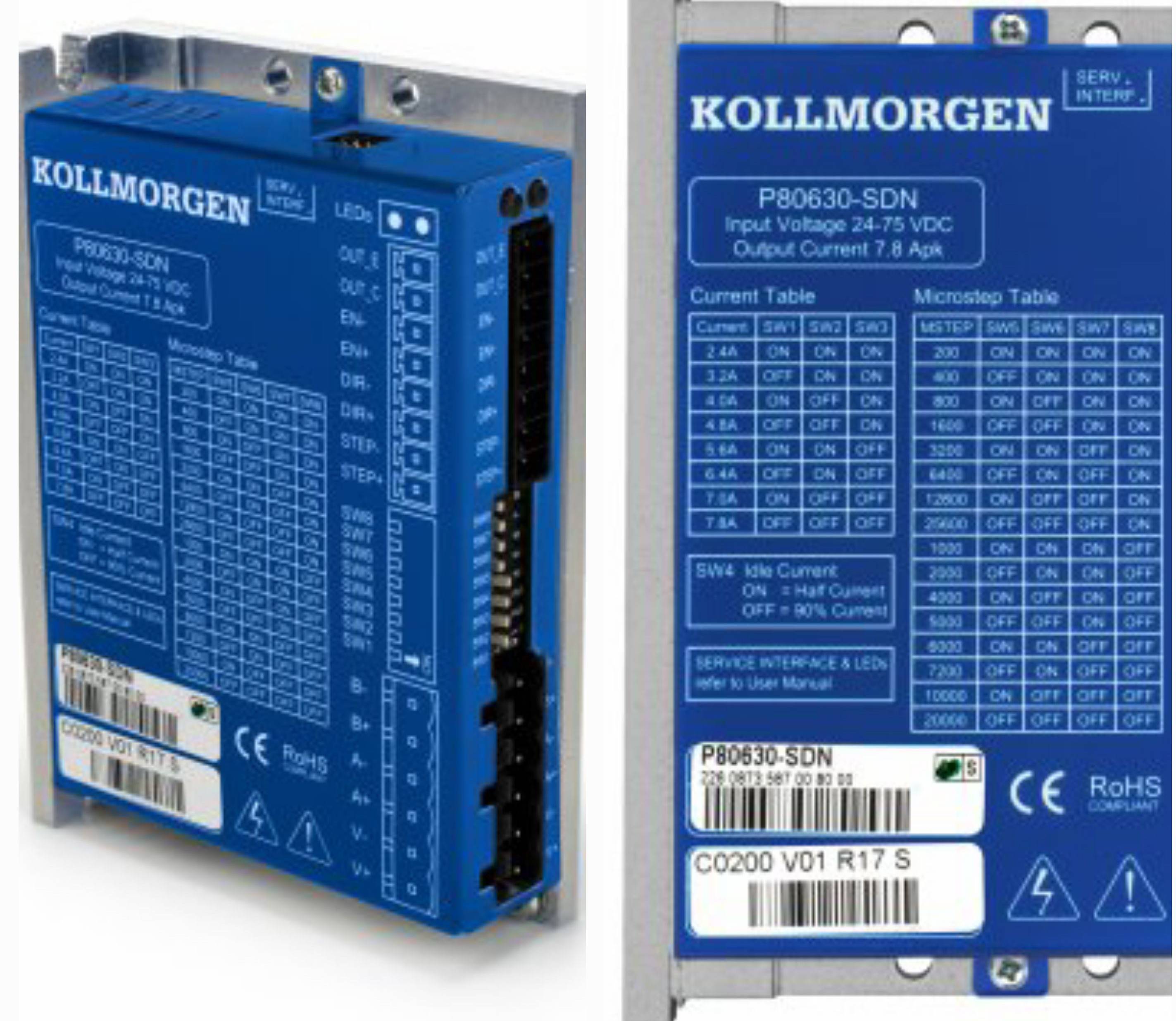 P80630-SDN step motor sürücü, 24 - 75 VDC arasında 5,5 Amper akım/faz (7,8 Amper tepe değer) arasında çalışan step motorları besliyor ve kontrol ediyor. Sürücü; etiketleyiciler , indeksleme masaları, CNC makineleri, ambalaj sistemleri, pompalar ve sabit yükler için düşük hız, uçtan uca hareket kontrolü gerektiren diğer tek ya da çok eksenli sistemler için ideal bir çözüm.