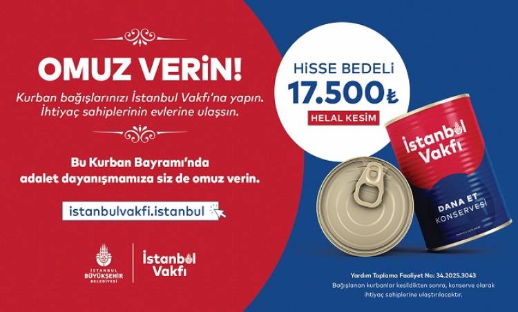 İstanbul Vakfı ilgili sayfasında, her yapılan bağışın miktarı ve bağışçı sayısı şeffaf şekilde yayımlanacak. Bağışlar istanbulvakfi.istanbul adresinden yapılabilecek. İstanbul Valiliği’nin (34.2025.3043) no’lu yardım toplama iznine istinaden başlatılan kampanyada kurban hisse bedeli bu yıl 17.500 bin TL oldu. Bağışlardan elde edilecek 14 adet konservenin, 13 adedi ihtiyaç sahiplerinin evlerine ulaştırılırken, 1 adedi arzu ederse hisse bağışçısına ulaştırılacak.