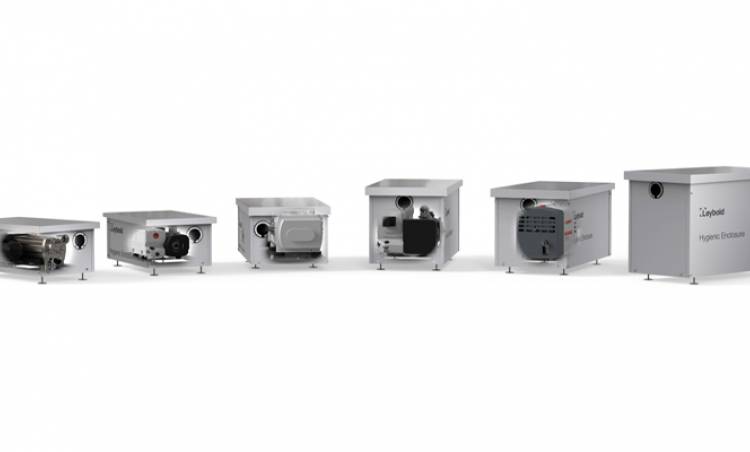 In order to counteract these risks, Leybold has developed a new protection concept with the Hygienic Enclosures. Encased by these stainless steel enclosures, the vacuum pumps can be positioned near machines and systems without any problems. „On the basis of the protected Leybold vacuum pumps we can create better and more robust solutions for the demanding food applications“, emphasizes the responsible product manager Niels Gorrebeeck. „Of course, this applies all the more to applications such as stuffers, tumblers and of course packaging machines, where the machines and systems are cleaned and disinfected particularly frequently and intensively,“ the product manager explains.