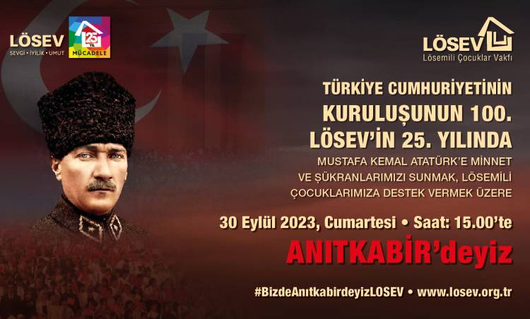 Cumhuriyetimizden aldığımız güçle ve inançla, 30 Eylül’de Ulu Önderimiz Gazi Mustafa Kemal Atatürk’e, sevgi, saygı ve minnetlerimizi sunmak üzere Ankara’da Lösemi ve kanser hastası iyileşmiş çocuklarımız ve aileleri, iyileşmiş gençlerimiz, bağışçılarımız ve gönüllülerimizle Atamızın Huzurunda bir araya geliyoruz.