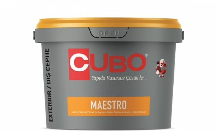 Tamamen yerli sermaye ile faaliyetlerini sürdüren boya markası CUBO’nun akrilik kopolimer bağlayıcı esaslı son kat dış cephe boyası Maestro’nun özellikleri saymakla bitmiyor. Maestro silikonlu, UV dayanımlı, nefes alan, suya ve dış etmenlere karşı koruyucu olma özellikleri ile dikkat çekiyor.
