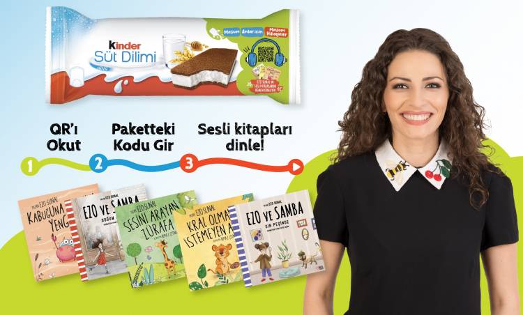 Masum anların atıştırmalığı Kinder Süt Dilimi, yazar ve eğitimci Ezo Sunal ile birlikte, çocukların hayal dünyalarını keşfetmelerine katkıda bulunacak özel bir projeye imza attı. “Masum Anlar için Masum Hikayeler” projesi, Ezo Sunal’ın hikayeleri, ebeveynlerin günlük hayatın telaşına tatlı bir gülümsemeyle ara verip çocuklarıyla geçirdikleri anları daha da özel kılacak. Ebeveynler, Kinder Süt Dilimi’nin ambalajındaki QR kod aracılığıyla Ezo Sunal’ın sesli kitaplarına erişerek, çocuklarıyla birlikte her kitapta yeni bir keşfe çıkıyor.