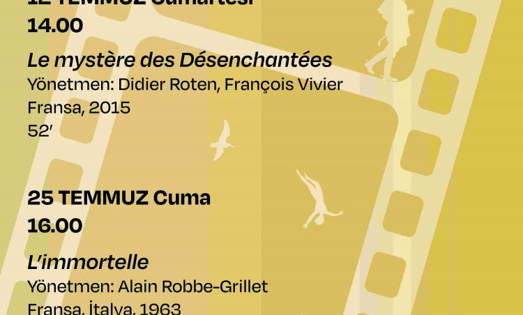 Seçkinin temmuz ayı programında, Alain Robbe-Grillet’denL’Immortelle ve Pierre Loti'nin Les Désenchantées romanından esinlenen, Didier Roten ve François Vivier’in yönettiği yarı kurmaca yarı belgesel Le Mystère des Désenchantées filmleri gösterilecek.