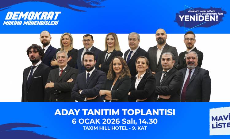 Bilimden, emekten, kamusal sorumluluktan ve demokrasiden yana bir mühendislik anlayışını savunan Demokrat Makina Mühendisleri, Makina Mühendisleri Odası İstanbul Şubesi 37.Dönem Yönetim Kurulu seçimleri kapsamında düzenleyeceği Aday Tanıtım Toplantısı ile kamuoyunun karşısına çıkıyor.