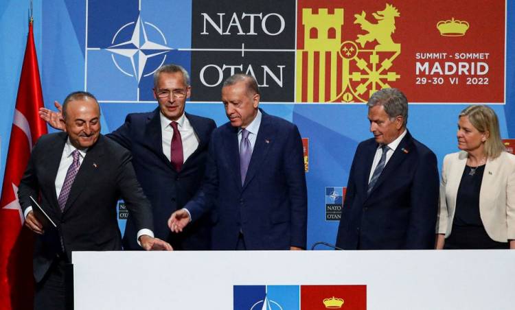 Başta Finlandiya ve İsveç'in NATO'ya katılmasına karşı çıkan Türkiye, 28 Haziran'da önemli bir baskıya teslim oldu ve iki İskandinav ülkesiyle uzlaşmaya vardıktan sonra konumunu terk etti. Türkiye Cumhurbaşkanı Recep Tayyip Erdoğan, İskandinavya'nın Suriye'deki Kürt gruplara verdiği desteği sona erdirmek ve Yunanistan'ı kızdırmak için NATO zirvesini kullanmayı planladı. İkincisi gerçekleşmese de Erdoğan, PKK'nın Suriye kolu olan Halk Koruma Birlikleri'ne (YPG) Finlandiya ve İsveç'in verdiği desteğin sona ermesini sağladı.