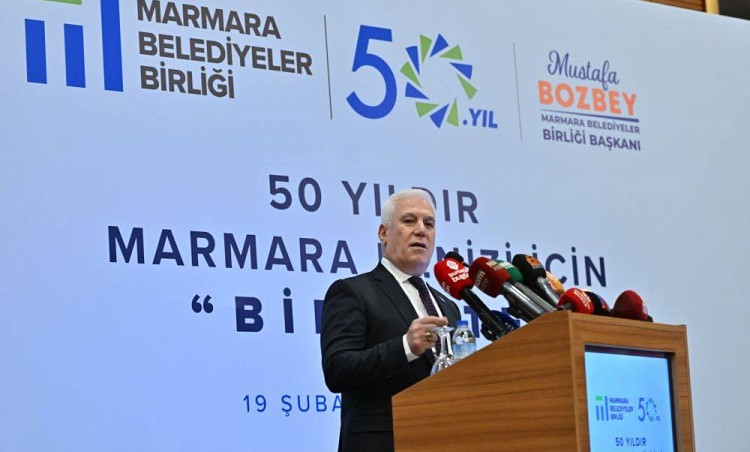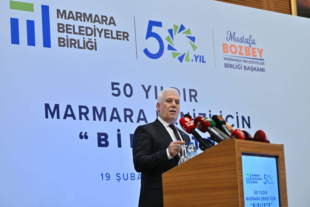 Marmara Denizi’nin bir yaşam kaynağı olduğunu dile getiren Bozbey, "Marmara Denizi geri dönülemez bir felakete sürükleniyor. Bu krizi durdurmak bizim elimizde. Marmara’nın çığlığını duymazdan gelemeyiz. Amacımız yalnızca sorunları ve çözümleri konuşmak değil, aynı zamanda somut ve etkili yol haritaları oluşturarak harekete geçmektir” dedi. Bozbey, “Yerel yönetimlerin gücünü artırmak, çevresel sorunlara karşı ortak hareket etmek ve vatandaşlarımız için daha yaşanabilir kentler oluşturmak en temel hedefimiz oldu. Bugün, 50 yıllık birikimle en büyük sınavımızı veriyoruz.” ifadelerini kullandı. Konuşmasında, 50. yıl dönümünü kutlarken MBB’nin bu yılki çalışmalarına da değinen Bozbey, Nisan ayında düzenlenecek Marmara Denizi Sempozyumu’na ve 1-3 Ekim 2025 tarihlerinde Haliç Kongre Merkezi’nde gerçekleşecek olan MARUF25’e katılım çağrısında bulundu.