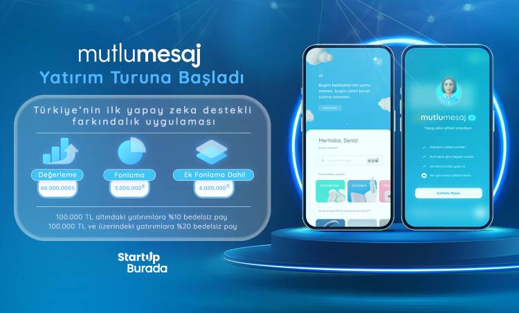Türkiye’nin ilk yapay zeka destekli motivasyon uygulaması olan Mutlumesaj girişimi, Startup Burada ile çıktığı ilk tohum yatırım turunda 5 milyon TL fon toplamayı hedefliyor. Yüzde 20 ek satış ile kampanyayı 6 milyon TL ile tamamlama hedefinde olan Mutlumesaj bu fon karşılığında şirket paylarının yüzde 10’unu yatırımcılarına arz ediyor. Mutlumesaj 12 Haziran’'dan itibaren 40 günlük kampanya sürecine başlıyor.