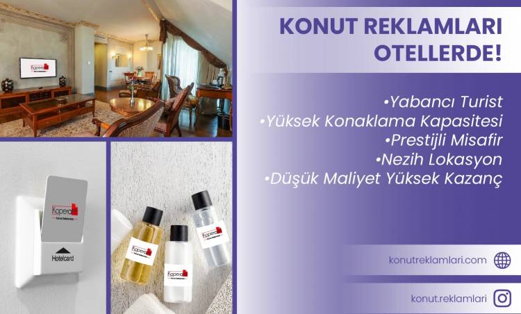 Konut Reklamları, otelleri reklamcılık sektöründe avantaja çevirmeye çalışan markaların başında geliyor. Markaların hedef kitle ve rakip analizini yaparak onlara en uygun lokasyonda yer alan otelleri markalar için bir pazar alanına çeviriyor ve markaların potansiyel müşterilerine kolayca ulaşmasını sağlıyor. Konut Reklamları ve hizmetlerini öğrenmek için aşağıdaki iletişim adreslerinden bilgi alabilirsiniz.Web sitesi: www.konutreklamlari.com