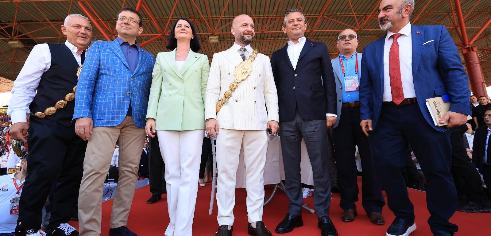 Konuşmaların ardından; Özel, İmamoğlu, Akın ve beraberlerindeki heyet, güreş müsabakalarını izlemek için tarihi Kırkpınar çayırına gitti.