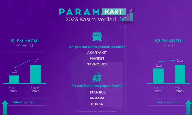 Yılın en avantajlı indirim kampanyalarının yapıldığı kasım ayında, ParamKart ve ParamPOS ile yapılan işlemlerde geçen senenin aynı dönemine göre büyük bir artış yaşandı. Bir önceki yılın aynı dönemine göre ParamKart'ın işlem hacmi yüzde 84, ParamPOS'un işlem hacmi ise yüzde 300 arttı. En çok harcama yapılan gün 27 Kasım olurken, ortalama sepet tutarı yüzde 116'lık artışla 796 TL oldu.