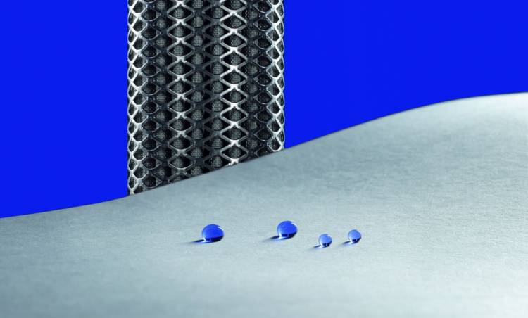 Birçok tıbbi ürün, hücrelerin yapışmasını önlemek veya kayma ve sürtünme özelliklerini optimize etmek için hidrofobik bir kaplamaya ihtiyaç duyar. Fraunhofer IFAM, dokunmamış sentetik bir kumaş üzerindeki hidrofobik kaplamanın gösterdiği gibi, floropolimerlerin daha önce kullanılabilir özelliklerini taklit eden flor içermeyen kaplamalar geliştirdi.