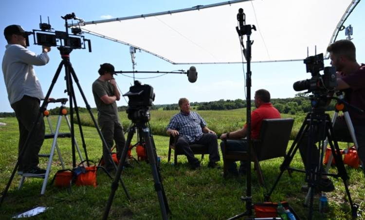 Bu görsel, Roeslein Renewables'ın 7 Nisan 2026'da saat 20:00'de (CST) RFD-TV'de yayınlanacak olan yeni orijinal video serisi "Prairie Prophets"in bir bölümünün çekim aşamasını göstermektedir. Seri, Amerika'nın tarım arazilerinde tarım, doğa koruma ve yenilenebilir enerjinin kesişim noktasını inceliyor. (Fotoğraf kredisi: Roeslein Renewables)