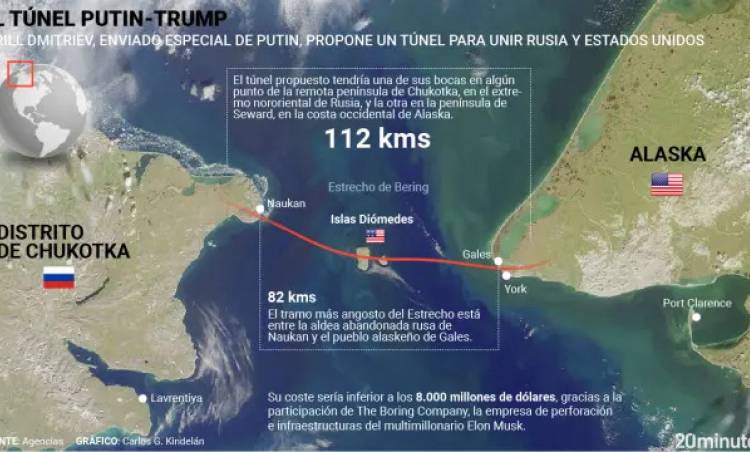 Biraz şaşırtıcı bir gelişme olarak, Rusya'nın yatırım elçisi ve Rusya Doğrudan Yatırım Fonu başkanı Kirill Dmitriev, birkaç gün önce Alaska ve Sibirya'yı birbirine bağlayacak Bering Boğazı'nın altından bir demiryolu tüneli fikrini ortaya attı. Dmitriev'in diplomatik arka kanallarda önemli bir rol oynadığı biliniyor. "Putin-Trump" tüneli olarak adlandırılan 112 kilometrelik proje, iki Büyük Güç arasındaki iş birliğini simgeleyecek ve Elon Musk'ın Boring Company şirketi tarafından 8 milyar dolar gibi düşük bir maliyetle inşa edilip sekiz yıldan kısa sürede tamamlanması bekleniyor.