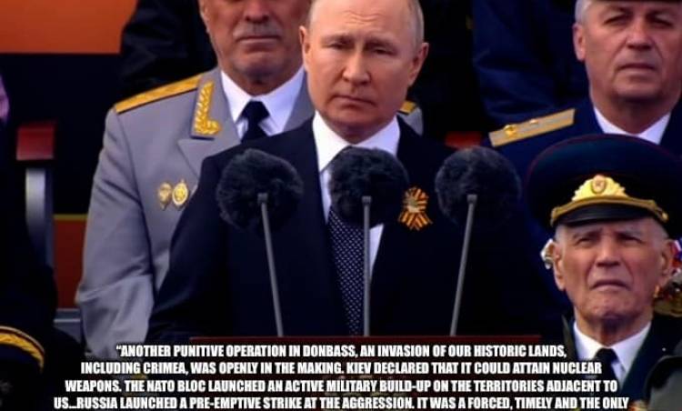 Rusya Devlet Başkanı Vladimir Putin, Rusya'da 'Zafer Günü' olarak kutlanan 9 Mayıs'ta, başkent Moskova'da Kızıl Meydan'da konuştu. Askeri geçit töreninde açıklamalarda bulunan Putin, Rusya'nın Ukrayna işgalini 'müdahale' sözleriyle niteledi. Rusya lideri, Ukrayna müdahalesinin 'gerekli' olduğunu ve Donbass'ın her zaman Rusya'nın tarihi kimliğinin vazgeçilmez bir parçası olduğunu söyledi.