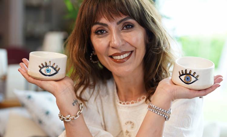 Seramik Sanatçısı Pınar Bamyacı, nazar boncuğu figürünü mum, fincan, kase, kaşık gibi bir çok objede her biri birbirinden farklı uygulamalar halinde kullandığını belirtiyor.