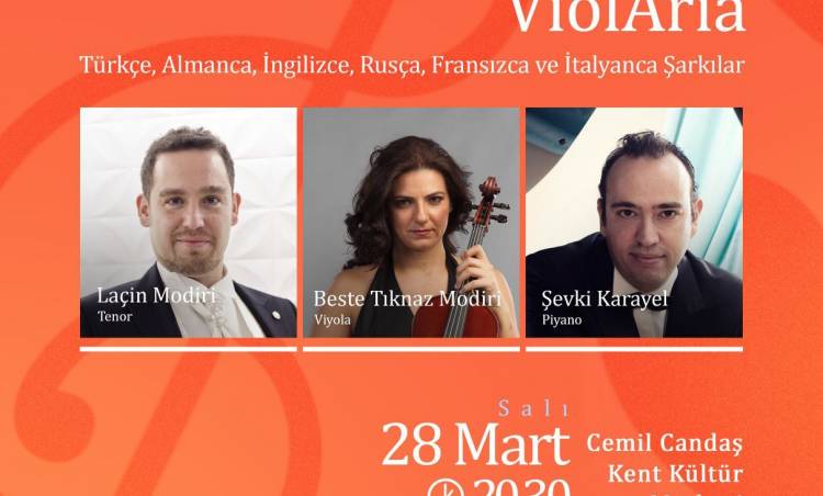 28 Mart Salı günü saat 20.30’da Şişli Belediyesi Cemil Candaş Kent Kültür Merkezi’nde gerçekleştirilecek olan Salı Resitalleri’nin bu haftaki konuğu ise ViolAria Grubu. Tenor Laçin Modiri, viyola sanatçısı Beste Tıknaz Modiri ve piyanist Şevki Karayel'den oluşan ViolAria; Türkçe, Almanca, İngilizce, Rusça, Fransızca ve İtalyanca şarkılardan oluşan zengin bir programla klasik müzikseverlerin karşısına çıkacak.