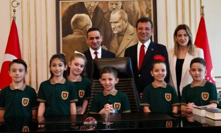 3’üncü sınıf öğrencileri olan Doğa İçli, Yağız Eren Balaban ve Kıvanç Üvez, Başkan Şahan’a çiçek takdim etti. Şahan, koltuğunu 9 yaşındaki Doğa İçli’ye bıraktı. Başkanlık koltuğuna oturan İçli, “Şişli’deki okulların boyanması talimatı” verdi. Programın sonunda hatıra fotoğrafının ardından ziyarete gelen öğrencilere Başkan Şahan tarafından hediye verildi.