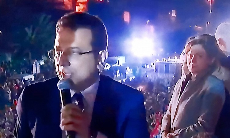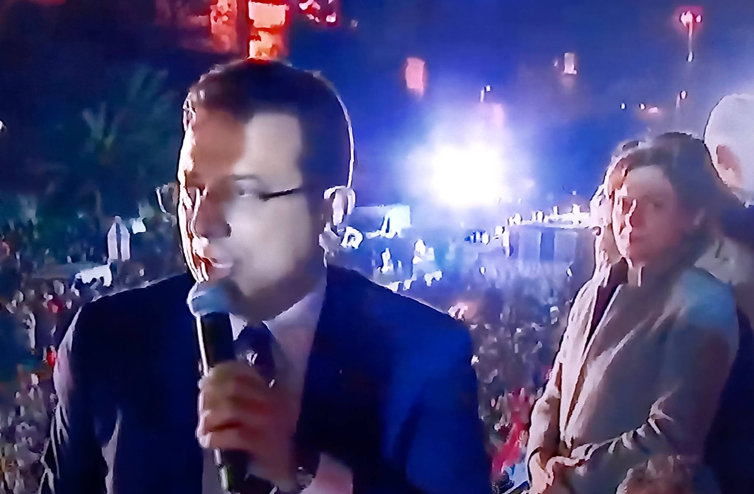 İBB Başkanı konuşmasında 'seçim döneminde kamu kaynaklarının iktidar lehine sınırsız şekilde kullanıldığını, kampanya süresince toplumu bölen ve kutuplaştıran bir dil kullanıldığını, Cumhurbaşkanı ve kabine üyelerinin seçim yasaklarını dikkate almayan eylem ve uygulamalarda bulunduklarını' söyledi.