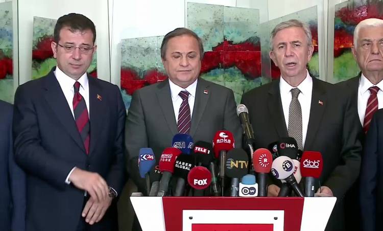 CHP Yerel Yönetimlerden Sorumlu Genel Başkan Yardımcısı ve Ordu Milletvekili Seyit Torun ve CHP'li Büyükşehir Belediye Başkanları, CHP Lideri Kemal Kılıçdaroğlu'nu genel merkezdeki makamında ziyaret ettikten sonra, basın mensuplarının sorularını yanıtladılar.