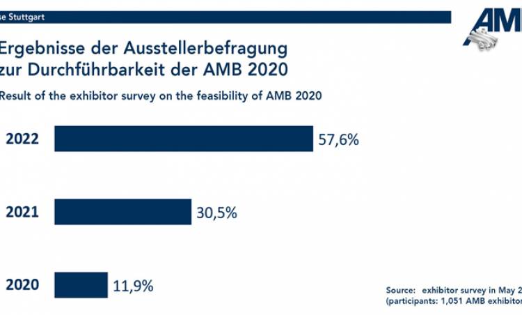 The next regular AMB will then be held in its regular cycle in Stuttgart from 13 to 17 September 2022. The new exhibition date creates planning security for every participant during the difficult economic situation at present. Messe Stuttgart actively included the exhibitors and the promotional supporters, i.e. the VDMA Precision Tools Association, the VDMA Software and Digitalisation Association, and the German Machine Tool Builders' Association (VDW), in this important decision (see attached graph relating to the result).