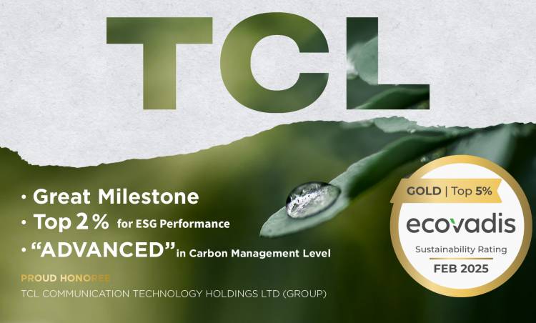 Zengin özelliklere sahip akıllı telefonlar, tabletler ve bağlantılı cihazlar alanında öncü olan TCL, çevresel, sosyal ve yönetişim (ESG) performansındaki üstün başarısı nedeniyle EcoVadis 2025 Altın Derecelendirmesi ile ödüllendirildi. Bu prestijli sertifika, değerlendirilen tüm şirketler arasında TCL'yi ilk yüzde 2'lik dilime taşıyarak, şirketin dünyanın en sürdürülebilir işletmelerinden biri olduğunu teyit etti.