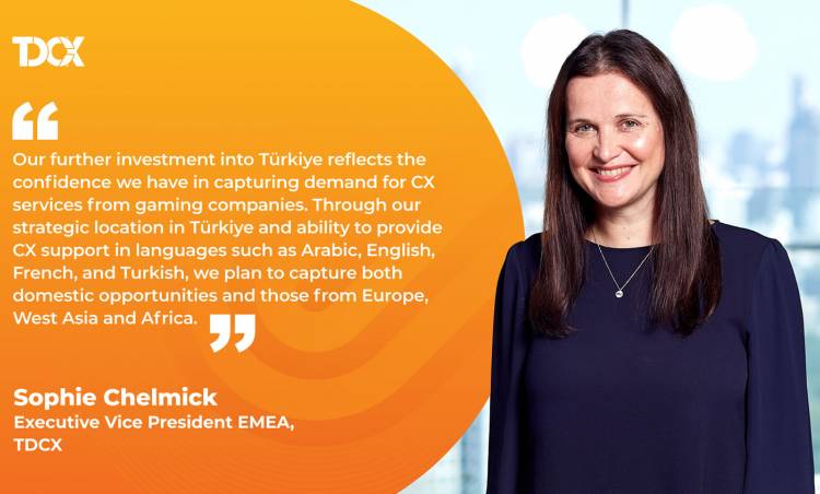 Oyun sektöründe, özellikle de deneyimin daha sürükleyici hale geldikçe ve sosyal bağlantılar etrafında inşa edildikçe güçlü bir büyüme gördüklerini ifade eden TDCX EMEA Başkan Yardımcısı Sophie Chelmick, "Türkiye'ye yaptığımız ek yatırımlar, oyun şirketlerinden gelen müşteri deneyimi (CX) hizmetlerine yönelik talebi karşılama konusunda duyduğumuz güveni yansıtıyor. Bu hizmetler arasında oyuncu ve topluluk desteği ile güven ve güvenlik yer alıyor. Olağanüstü CX sonuçları ve üst düzey oyuncu deneyimleri sunma becerimiz, derin sektör uzmanlığımız ve müşteri ihtiyaçlarına yanıt verme kabiliyetimizle birleştiğinde, oyun şirketlerinin marka sadakati ve güçlü bir takipçi kitlesi oluşturmasına yardımcı olmak için bizi güçlü bir konuma yerleştiriyor. Türkiye'deki stratejik konumumuz ve Arapça, İngilizce, Fransızca ve Türkçe gibi dillerde CX desteği sağlama yeteneğimiz sayesinde hem yerel fırsatları hem de Avrupa, Batı Asya ve Afrika'dan gelen fırsatları yakalamayı planlıyoruz" dedi.