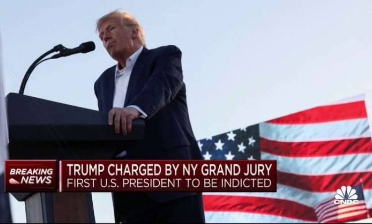 30 Mart'ta eski başkan Donald Trump, Manhattan büyük jürisinin oylamasının ardından resmen suçlandı. İddianame henüz açıklanmadı, ancak bazı medya kaynakları, Trump'ın 2016 kampanyası sırasında sözde mali suistimalin yanı sıra yetişkin bir film yıldızına gizli para ödendiği iddiasını da içerdiğini bildiriyor. Ağır suç iddianamesi önümüzdeki birkaç gün içinde açıklanacak ve şu anda Manhattan bölge savcılığı tarafından mühür altına alınacak. New York Times'a göre, o zamana kadar bölge savcısı Alvin L. Bragg için çalışan savcılar, "Bay Bragg'a sormuş olacaklar. Trump teslim olacak ve şimdilik bilinmeyen suçlamalarla yargılanacak "dedi.