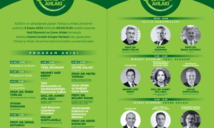 Türkiye İktisadi girişim ve İş Ahlakı Derneği (İGİAD) tarafından ilk defa 15 Ekim 2016 tarihinde yapılan Türkiye İş Ahlakı Zirvesi alandaki önemli bir boşluğu doldurmayı hedefliyor. Zirve, Türkiye’de “İş Ahlakı”nı kamuoyunun, devlet kurum ve kuruluşlarının, iş dünyasının ve STK’ların gündemine taşımayı; İş ahlakı konusunda duyarlılık artışı sağlamayı; İş ahlakının yaygınlaşmasına katkıda bulunmayı; iş ahlakında iyi uygulama örneklerini ortaya çıkarmayı ve kamuoyunun gündemine taşımayı amaçlıyor.