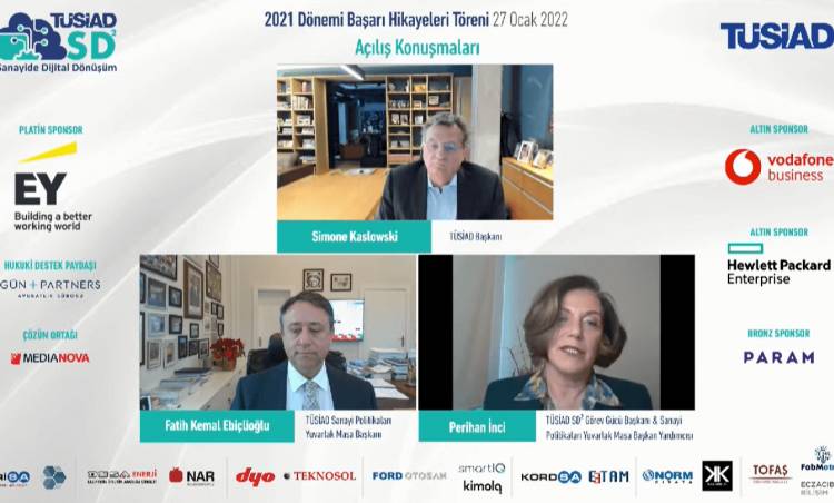 TÜSİAD SD2'nin dördüncü dönemini heyecanla tamamladıklarını ifade eden TÜSİAD Sanayi Politikaları Yuvarlak Masası Başkan Yardımcısı ve TÜSİAD SD2 Görev Gücü Başkanı Perihan İnci, “2021'de eşleşen şirketler dokuz alanda dijital çözüm çalıştı. Bu çözümleri törende izleyicilerle buluşturuyoruz ve jürimizin belirlediği başarı kategorilerini açıklıyoruz. Çalışılan çözümlerle iyi uygulama kütüphanesi oluşturan TÜSİAD SD2'nin yeni ilham veren çözümlerini kamuoyu ile paylaşmaktan mutluluk duyuyoruz” dedi. İnci ayrıca, TÜSİAD SD2'nin 4. Dönemini kapatırken 5. Çağrı dönemini de başlattıklarını paylaştı.