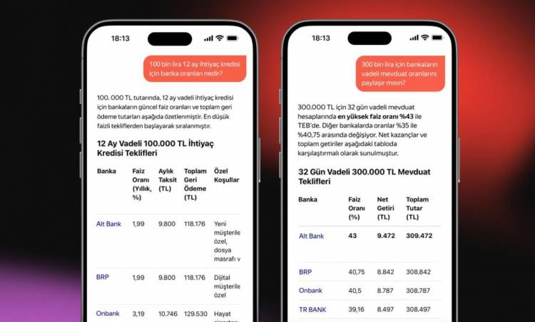 Bu entegrasyonla birlikte "ihtiyaç kredisi hesaplama”, “taşıt kredisi”, “konut kredisi” veya “mevduat faiz oranları” gibi konularda aramalar yapan kullanıcılar Türkiye'deki farklı bankalar ve finans kuruluşlarının güncel tekliflerini içeren yapay zekâ destekli yanıtlar alabiliyor. Faiz oranları, aylık taksitler, toplam geri ödeme tutarları ile temel şartlar ve koşullar tek bir ekranda görüntüleniyor. Böylece birden fazla web sitesini ziyaret etmeye veya teklifleri tek tek karşılaştırmaya gerek kalmıyor.