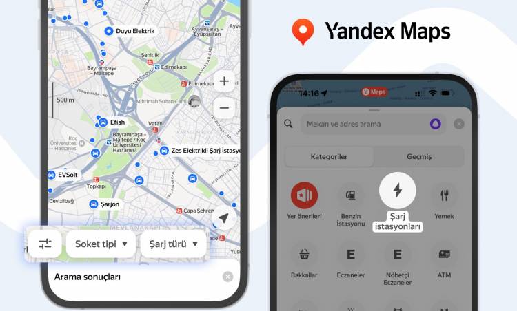 Yandex Maps, Türkiye'de elektrikli araç sahipleri için araçların teknik özelliklerine uygun şarj istasyonlarını kolayca bulup yol tarifi almayı sağlayan yeni bir özelliğini duyurdu. iOS, Android, Apple CarPlay ve Android Auto üzerinden erişilebilen bu yeni özellik sayesinde kullanıcılar, farklı markalara ait 10 bini aşkın şarj noktasını kolayca bulup rota oluşturabiliyor.