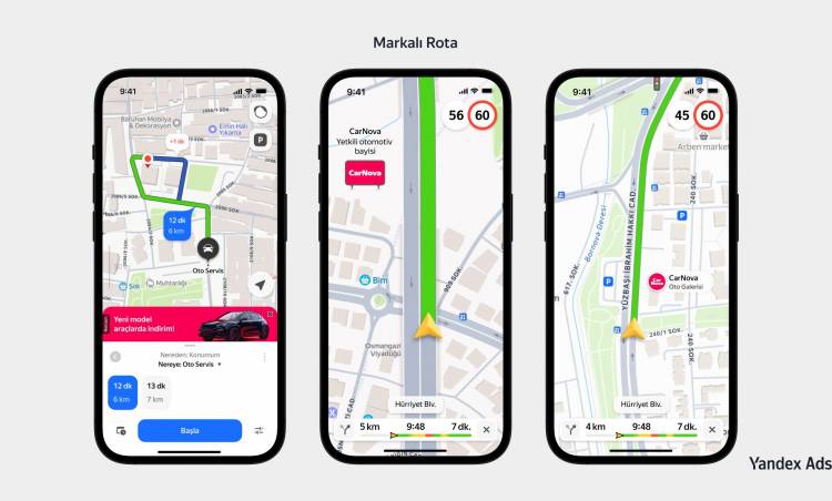 Markalı Rota, sayesinde işletmelere navigasyondaki tüm rotayı kendi markasına göre özelleştirebiliyor ve kullanıcıları doğrudan mağazalarına yönlendirebiliyor. Şirketler, kategoriye göre kullanıcıları hedefleyerek belirli bir iş türünü arayanlara ulaşabiliyor veya belirli bir konuma giden kullanıcılara odaklanabiliyor. Örneğin, bir çiçekçi “Çiçek” kategorisini hedefleyebilirken, bir süpermarket özel kampanyalarını ya da kısa süreli indirimlerini öne çıkararak yeni alışverişleri teşvik edebiliyor. Bu rotalar; Pin, Banner ve Billboard gibi farklı reklam formatlarını destekliyor ve güzergâh boyunca rakip reklamlar gösterilmiyor.