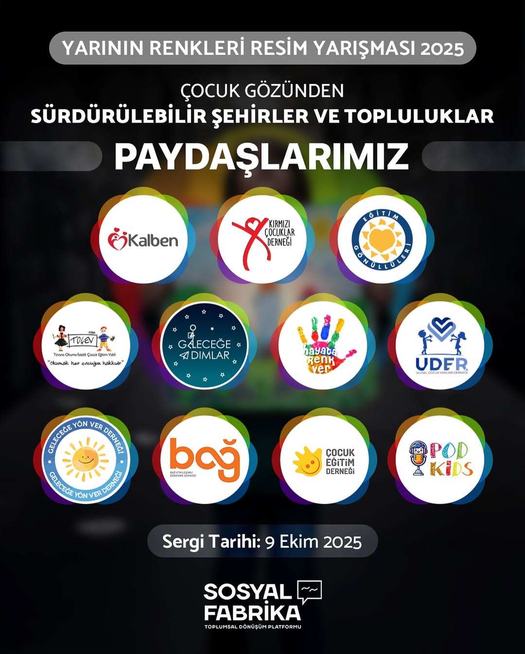 “Yarının Renkleri Resim Yarışması”, çocukların hayallerine alan açarken; dönüşüm yolculuğunda proje güç veren değerli paydaşlarla birlikte büyümeye devam ediyor. Bu yıl; Kalben, Kırmızı Çocuklar Derneği, Eğitim Gönüllüleri, TOÇEV (Tüvana Okuma İstekli Çocuk Eğitim Vakfı), Geleceğe Adımlar, Hayata Renk Ver, UDER (Ulusal Çocuk Hakları Derneği), Geleceğe Yön Ver Derneği, Bağ Etkileşimli Öğrenme Derneği, Çocuk Eğitim Derneği ve Pop Kids’in değerli paydaşlığında “Yarının Renkleri Resim Yarışması” projesi gerçekleşiyor.