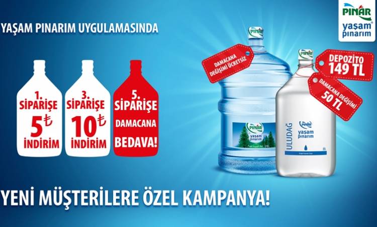 Türkiye’nin ilk ambalajlı suyunu tüketici ile buluşturan Pınar Su ve İçecek, tüketicilerini Ramazan boyunca bütçe dostu kampanyalarla buluşturmaya devam ediyor. “Yaşam Pınarım” mobil uygulamasına üye olarak su siparişi veren kullanıcılar, ilk damacana siparişini 5 TL indirimli, üçüncü damacana siparişini 10 TL indirimli, beşinci damacana siparişini ise ücretsiz veriyor.