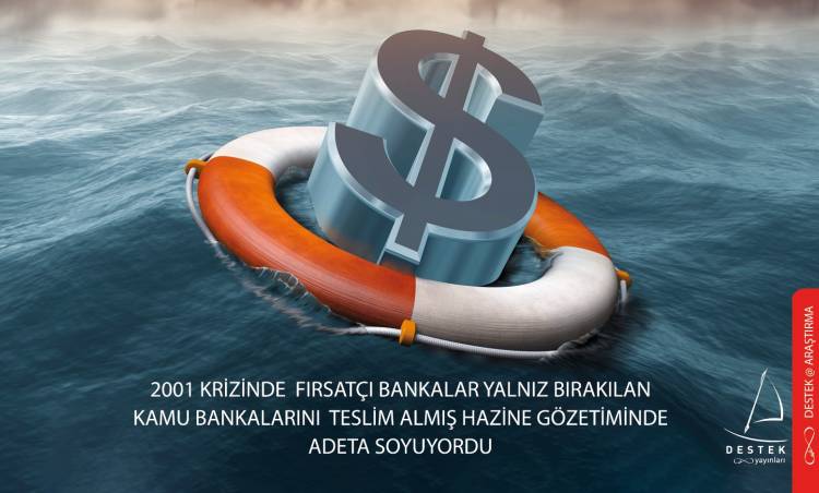 2001, Ecevit başbakanlığında DSP, ANAP ve MHP son koalisyon dönemi, sağdan destekli Dünya Bankası ve IMF’ye teslim bir ekonomi yönetimi, off-shore şaklabanlığı ve yozlaşan bir bankacılık sistemi, bir ayağı kamuda bir ayağı özele kayan Hazine bürokrasisi, partilerin senin benim diye paylaştıkları kamu bankaları, holding patronları sahipliğinde kumarhaneye dönüşen özel bankalar, vahşi faizlerle çıldırmış para piyasaları, kara listeler, vadeden önce kapatılan krediler, bu karmaşada arada kalıp yaşam savaşı veren, ekonomiyi sırtlamış reel sektör, esnaf, sanatkâr, KOBİ’ler ve ipotekli malları yağmalanan sanayiciler, yok yere üretimden düşen işletmeler. Bu dönemde, kamu bankaları da sanki siyasilerin aile şirketleriydi, mahdumları kapıdan kovsanız bacadan giriyordu.
